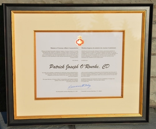 The Commendation consists of a certificate, a lapel pin for civilian wear, and a bar to wear with decorations. Pat was nominated for this award by our Association’s Veterans Memorial Committee. For more information: https://www.veterans.gc.ca/eng/about-vac/who-we-are/department-officials/minister/commendation/bio/1653