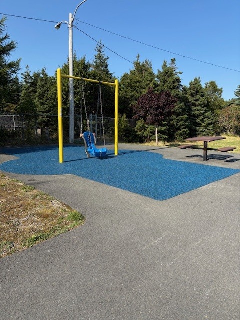 Our Association collaborated with the Town and ActiveNL (GovNL/Department of Tourism, Culture, Arts & Recreation) to jointly fund this project. The Town provided additional in-kind services, including the removal of the concrete border and pea gravel, preparation of appropriate bedding materials, and grading of the surface according to standards required for mat installation. In September, Coastline Specialties Ltd. installed approximately 450 square feet of rubber surface, ensuring compliance with CSA requirements. Subsequently, we partnered with the Town to co-fund the purchase of a new swing seat equipped with a three-point harness. Total project cost was $32,505.00.